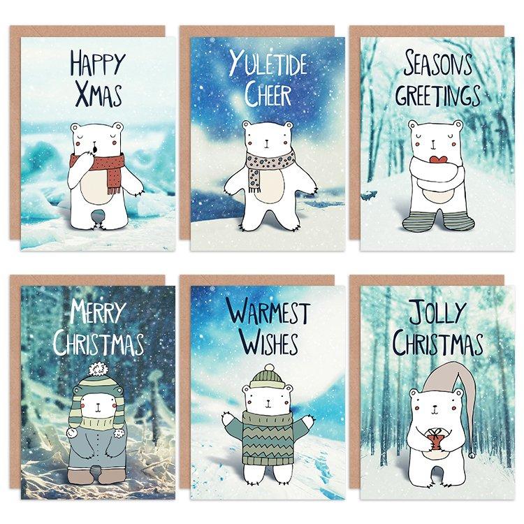 Christmas Cards Cute Polar Bears Snow Scene Kids Blank Greeting Cards With Envelopes Pack of 6