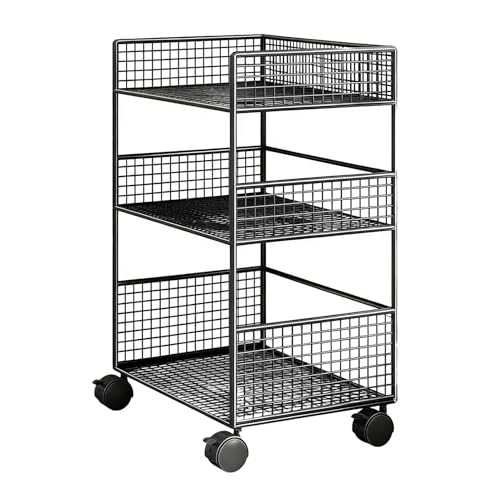3 Tier Rolling Cart - 3-Tier Metal Trolley with Wheels - Kids Bedside Cart for Kitchen, Office, Cleaning, Students, Laundry, Bathroom, Classroom, Craft Room, Storage Room