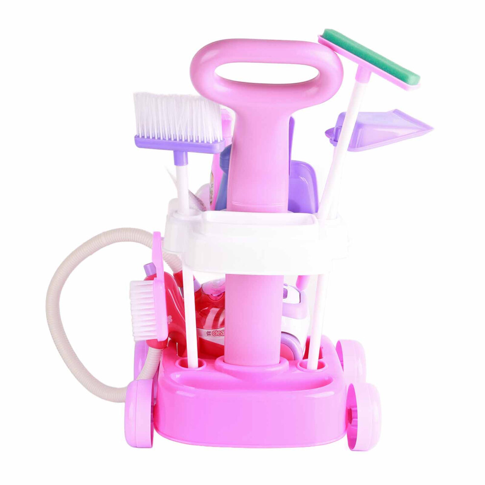 predolo Kids Cleaning Cart Playset Encourages Role Play Toy Cleaning Trolley Set Realistic Design Toy Housekeeping Tools , 66735 Pink SET
