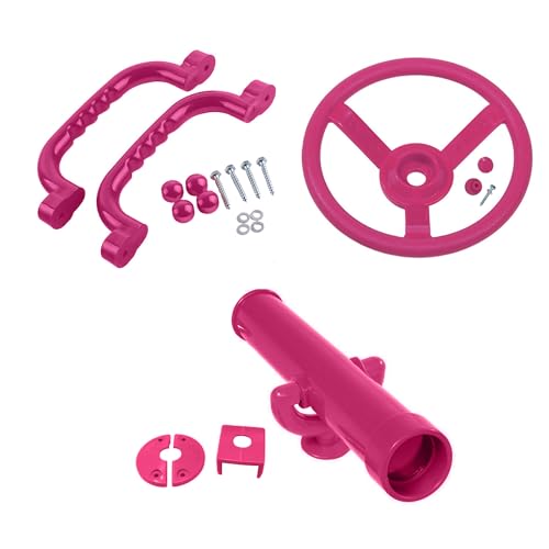 Kids Toys Climbing Frame Accessory Bundle Play Telescope Safety grab handles Steering wheel Tree house accessories Play Den (Pink)