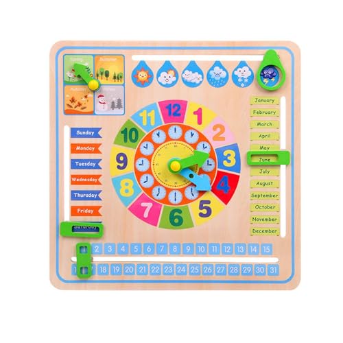 Calendar Clock, Kids Learning Time, 11.81x11.81 Inches, Wooden Educational, Season Exploration And Inspired Study, For Gift, Boys, Girls, Interactive Strig Design, Multicolor