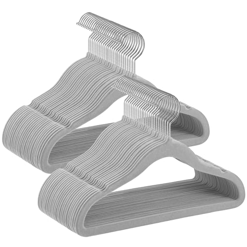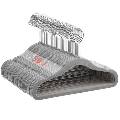 MangoKit Non-Slip Kids Velvet Hangers, Ultra-Slim Space Saving Baby Coat Hangers,360 Degree Rotatory Hook,Sturdy Baby Clothes Hangers 50 Pack (28cm,Grey)