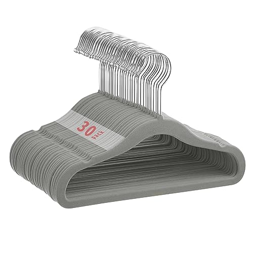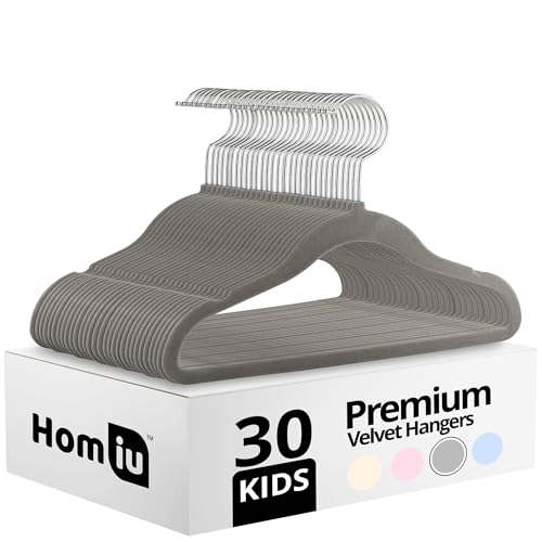 Homiu Non-Slip Kids Velvet Hangers | Ultra-Slim Space Saving Baby Velvet Coat Hangers | 360 Degree Rotatory Hook, Sturdy Baby Clothes Hanger | 30 Pack (Grey, 30 Pack)