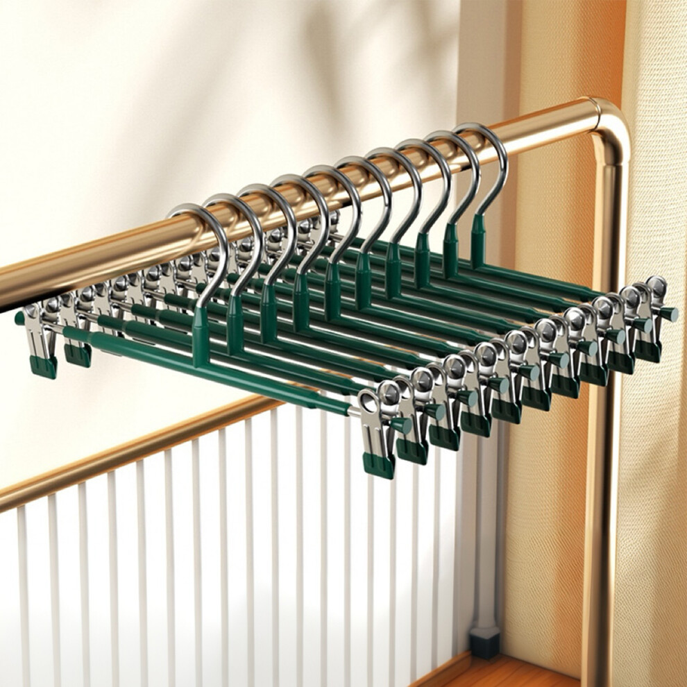 (Dark green) 5pcs Kids Coat Hangers Stainless Steel Strong Clamping Force Stainless