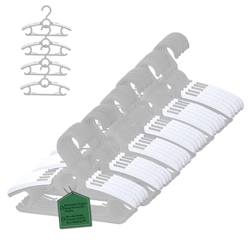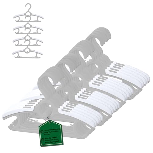 Anstore 20 Pack Plastic Nursery Hangers, Extendable Baby Hangers for Clothes, Children Coat Hangers with Space-Saving Stackable Hooks, Non-Slip Toddler Hangers for Kids from Birth to 12 Years (White)