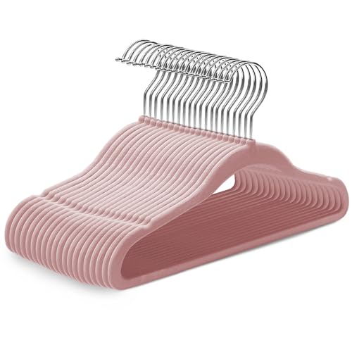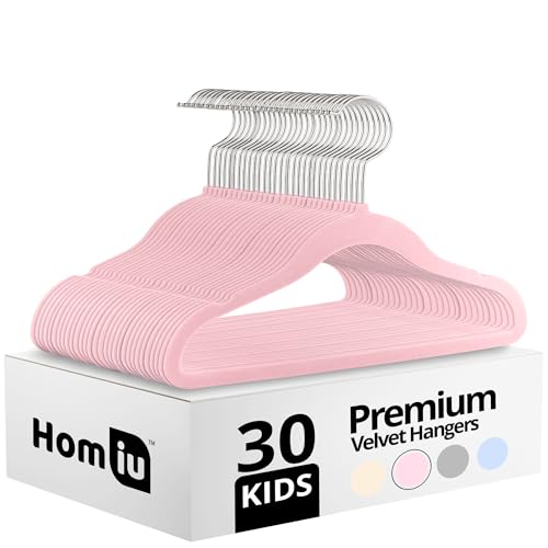 Homiu Non-Slip Kids Velvet Hangers | Ultra-Slim Space Saving Baby Velvet Coat Hangers | 360 Degree Rotatory Hook, Sturdy Baby Clothes Hanger | 30 Pack (Pink, 30 Pack)