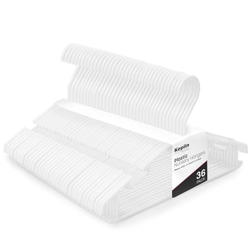 KEPLIN 36 Pack Children's Hangers, Plastic, Nonslip Baby Coat Hangers, Space Saving Tubular Hangers, More Storage for Kids Children Clothes Dresses (White)
