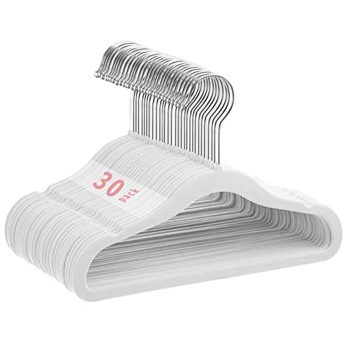 MangoKit Non-Slip Kids Velvet Hangers, Ultra-Slim Space Saving Baby Velvet Coat Hangers,360 Degree Rotatory Hook,Sturdy Baby Clothes Hanger 30 Pack (28cm,White)