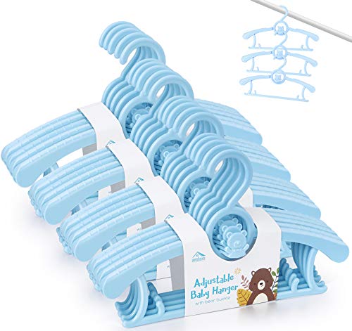 Anstore Baby Hangers, 20 Pack Children Coat Hangers with Space-Saving Stackable Hooks, Non-Slip Extendable Hangers for Babies Toddlers Kids Children, Blue