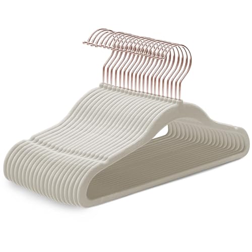 Kidoola 20 Velvet Baby Hangers, Nursery Coat Clothing Hangers for Babies, Infant, Toddlers and Kids, Unisex for Boys or Girls up to 24 Months (Ivory/Rose Gold)