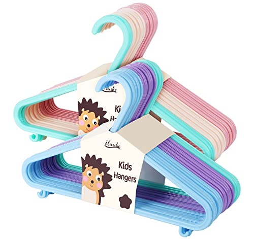 ilauke 40 Pack Plastic Children’s Clothes Hangers Colourful Plastic Coat Hangers for Kids Clothes Hangers for Skirt Trouser Bar (28.5cm x 17.5cm)