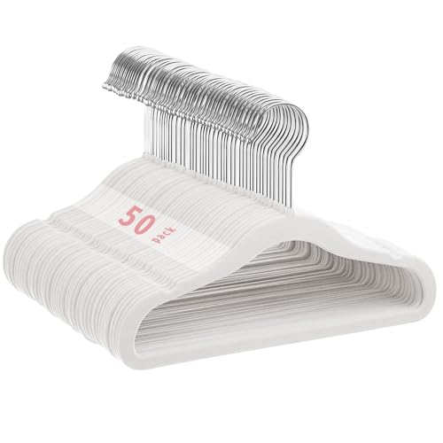 MangoKit Non-Slip Kids Velvet Hangers, Ultra-Slim Space Saving Baby Velvet Coat Hangers,360 Degree Rotatory Hook,Sturdy Baby Clothes Hangers 50 Pack (28cm,White)