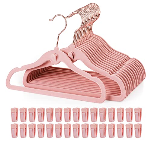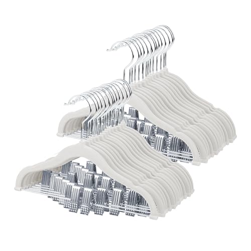 HOUISM Baby Velvet Hangers, 30Pack with 20 Finger Clips, Ultra-Slim Space Saving 360° Swivel Hook Notched Shoulder Kids Coat Hangers