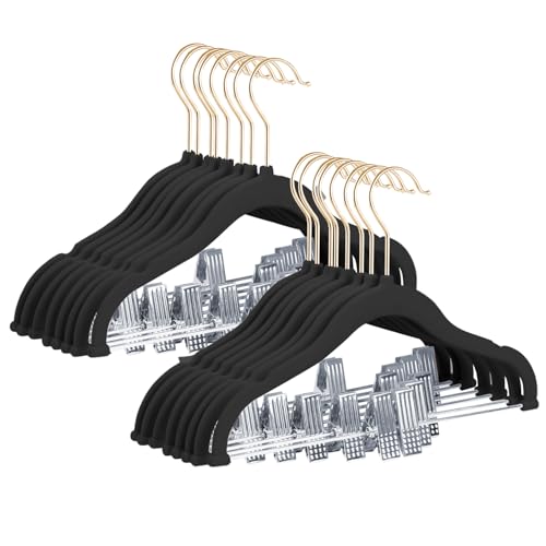 Stormix Baby Hangers, 24 Pack Pants Hanger with Clips, Heavy-Duty Kids Hangers for Shirts, Pants, Skirts, Dresses, Jackets, Coat Black (Gold Hook)