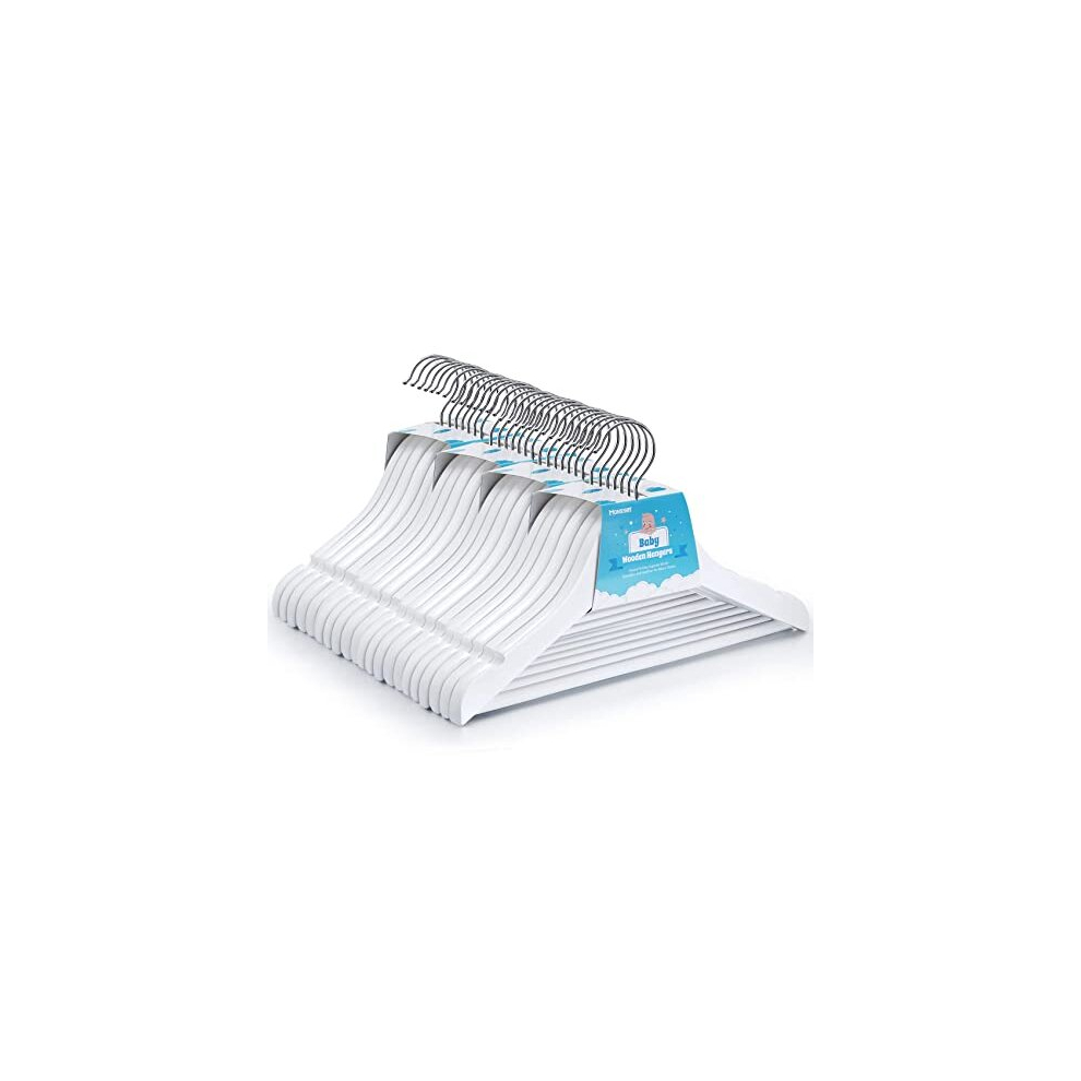 White Childrens Hangers, Set of 24 Babies Wooden Hangers with Bridge Notches and 360 Swivel Hook Kids Toddler Wooden Coat Hangers For Baby & Kids