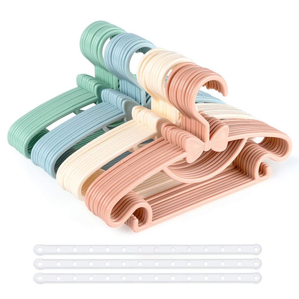 Baby Hangers Multicolored, 40pcs Plastic Baby Wardrobe Hangers with 3 Plastic Hanger Straps, Nonslip Ultra Thin Kids Hangers, Kids Coat Hangers for