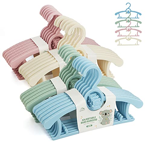 Baby Hangers Multicolored, 40pcs Plastic Baby Wardrobe Hangers with 3 Plastic Hanger Straps, Nonslip Ultra Thin Kids Hangers, Kids Coat Hangers for Baby and Toddler Clothes - (4 Colors)
