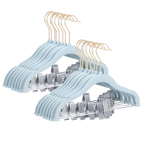 Stormix Baby Hangers, 14 Pack Pants Hanger with Clips, Heavy-Duty Kids Hangers for Shirts, Pants, Skirts, Dresses, Jackets, Coat Blue (Gold Hook)