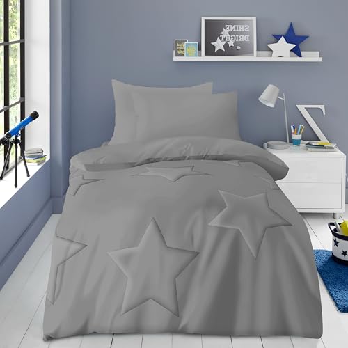 GC GAVENO CAVAILIA Kids Coverless Duvet Single - 100% Polyester Down Alternative Comforter Stars Stitching - 10.5 Tog Coverless Quilt With Pillowcase - Soft, Warm Bedding - (137x200cm), Grey