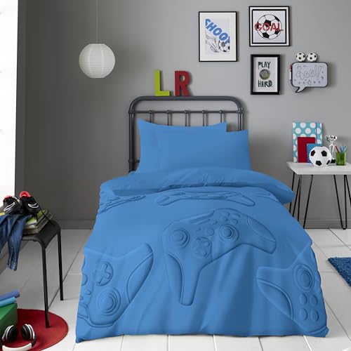 GC GAVENO CAVAILIA Kids Coverless Duvet Single - 100% Polyester Down Alternative Comforter Gamer Stitching - 10.5 Tog Coverless Quilt With Pillowcase - Soft, Warm Bedding - (137x200cm), Blue