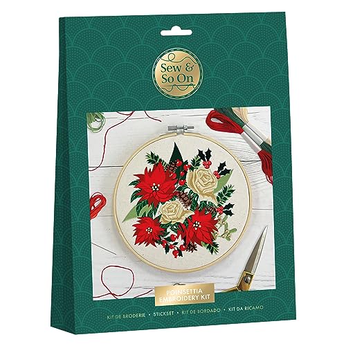 Sew & So On Embroidery Craft Kit, Christmas Poinsettias Includes All Craft Accessories Needed Ideal DIY Adult and Older Kids Craft Kits, Makes A Great Craft Art Gift, Use for Christmas Home Decor