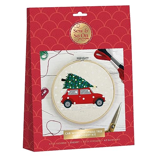 Sew & So On Embroidery Craft Kit Car with Christmas Tree, Includes All Craft Accessories Needed Ideal DIY Adult and Older Kids Craft Kits, Makes A Great Craft Art Gift, Use for Christmas Home Decor