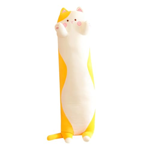 STHomedeco Cat Teddy Plush Pillow, Cute & Soft Stuffed Animal Cat, Squishy Cuddle Cushion for Kids, Plushies for Girls, Ideal Cat Gifts for Women (Yellow, 90cm / 35inch)