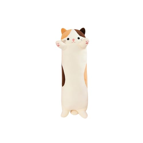 STHomedeco Long Pillow Cat Teddy Plush, Cute & Soft Stuffed Animal Cat, Squishy Cuddle Cushion for Kids, Plushies for Girls, Ideal Cat Gifts for Women (Tri-Colour, 50cm / 19inch)