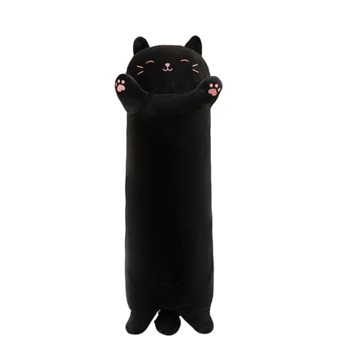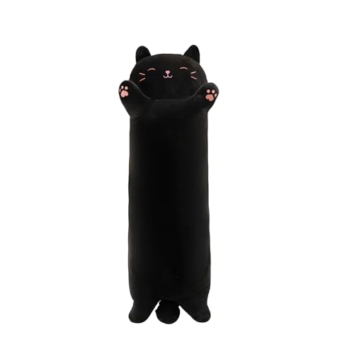 STHomedeco Cat Teddy Plush Pillow, Cute & Soft Stuffed Animal Cat, Squishy Cuddle Cushion for Kids, Plushies for Girls, Ideal Cat Gifts for Women (Black&Pink, 110cm / 43inch)