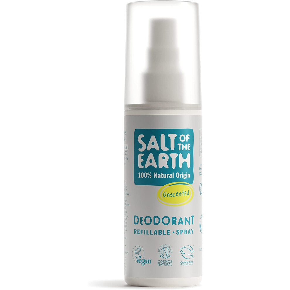 SALT OF THE EARTH Refillable100% Natural Deodorant Spray Ingredients Vegan Long Lasting Protection Suitable For Women Men Kids 100ml Unscented