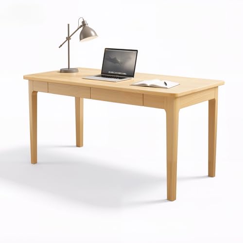 LAITEGOG Solid Wood Kids Desk with Drawers, Student's Study Computer Workstation Writing Table, for Bedroom and Kidsroom(Wood color,47.2inch)