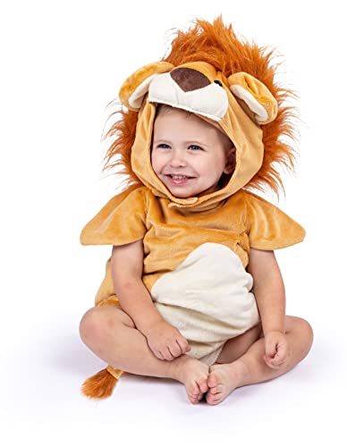 Dress Up America Baby Lion Costume – Infant & Toddler Plush Romper with Hood and Tail – Soft Halloween Outfit for Kids - Animal Dress Up & Role Play