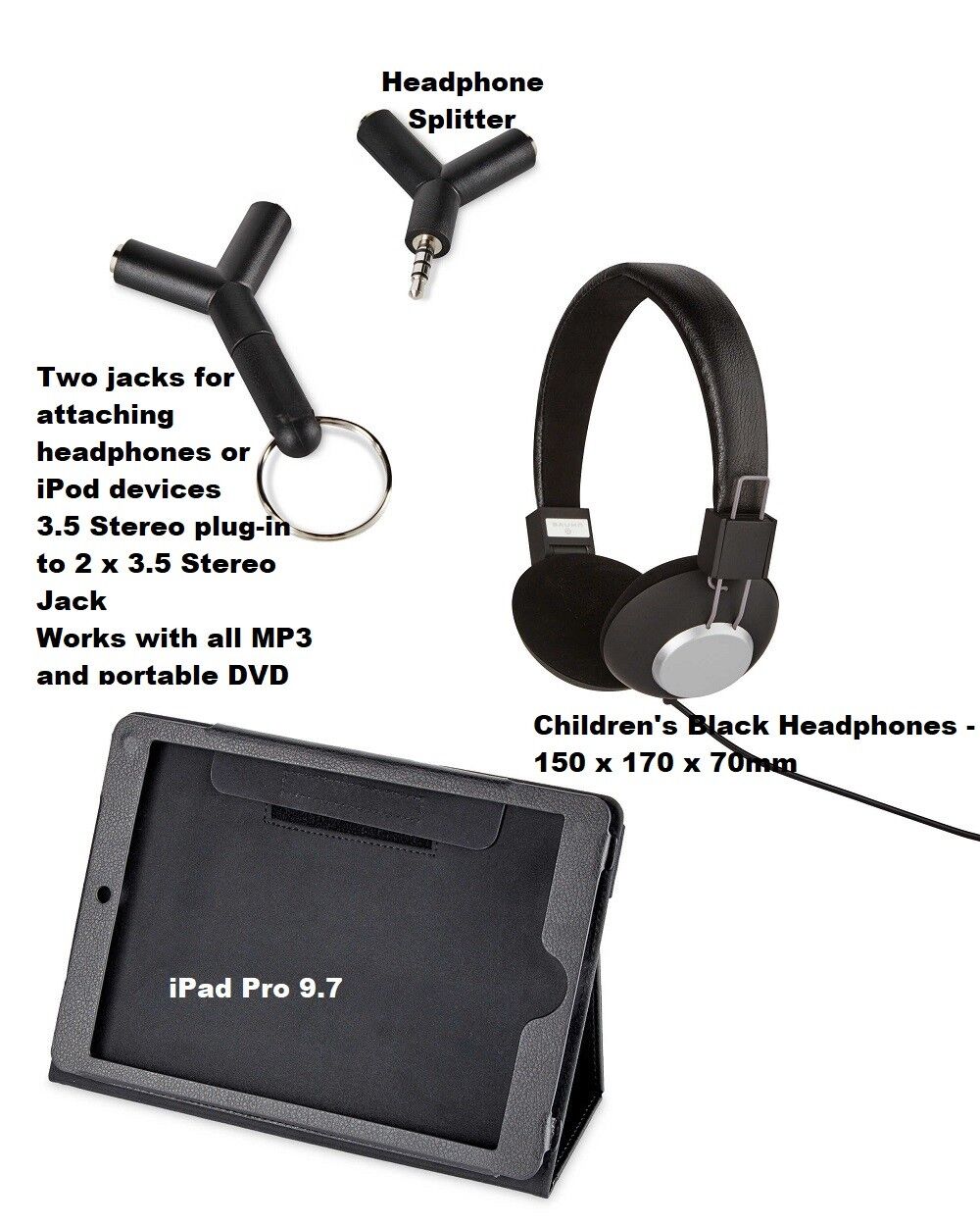 Kids Car Travel Kit iPad Pro 9.7 Case Holder + Headphones for MP3 DVD players