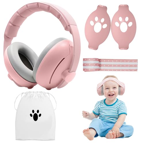 Mineup 2-in-1 Baby Ear Defenders, Noise Cancelling Headphones for Baby and Toddlers up to 5 Years, Kids Earmuffs Noise Reduction with Adjustable Headband for Improve Sleep Against Hearing Damage Pink