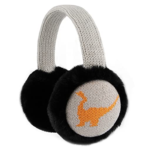 BTHRORO Ear Muffs Kids Cute Dinosaur Earmuffs Adjustable Knit Ear Warmers Soft Plush Winter Warm Ear Covers for Boys Girls