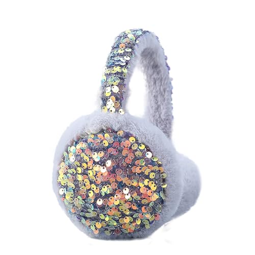 SEDEX Ear Muffs Kids Winter Girls Earmuffs Sequins Ear Warmer Children Plush Thermal Furry Ear Covers Windproof Soft Adjustable Headband Outdoor Sports Faux Fur Ski Cycling Headwear(Grey)