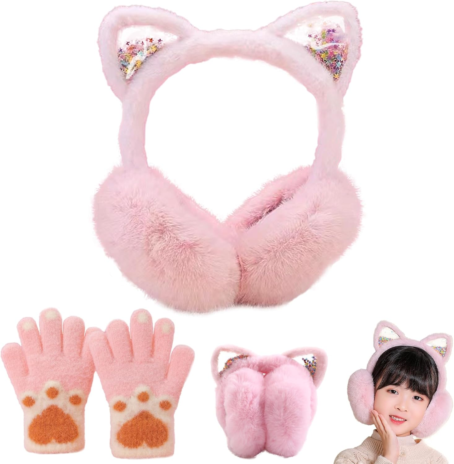 DKDDSSS 1PCS Ear Muffs, Winter Kids Earmuffs Warm Ear Cover For Girls Children Ear muffs Cat Ear Warmers Winter Warm Faux Furry Cute Ear Covers for Keep Ears Warm In Cold Weather, Pink