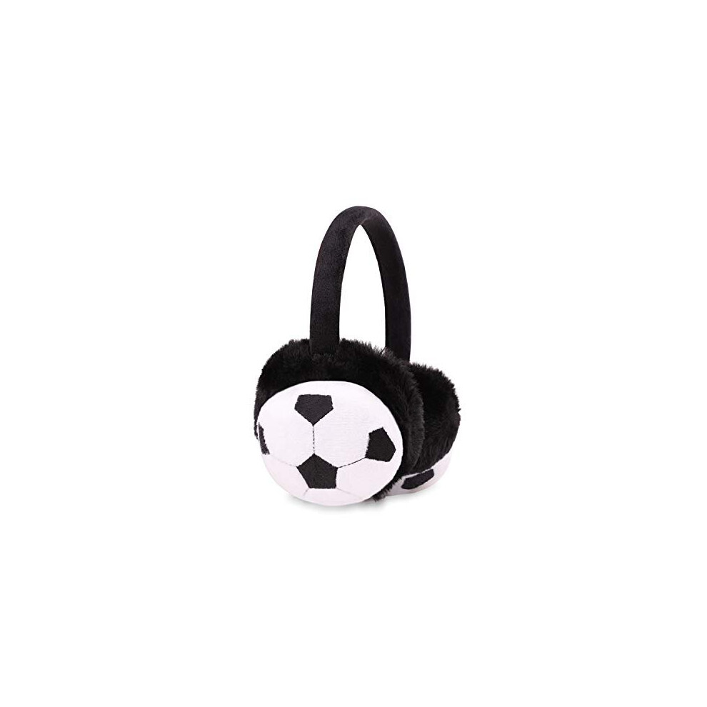 YJZQ Kids Football Pattern Earmuffs - Winter Warm Soccer Design Ear Warmers, Plush Cartoon Children's Fluffy Faux Fur Protection - Xmas Birthday Gifts