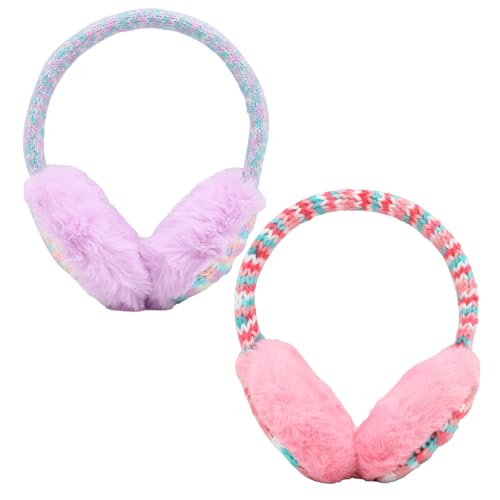 VEGCOO 2 Pcs Kids Earmuffs, Adjustable Kids Earmuff Knitted Earmuff Winter Warm Plush Ear Muffs, Soft Velvet Ear Covers Warmers Earmuffs for Girls Boys Kid Toddler and Teen 3-8 Years