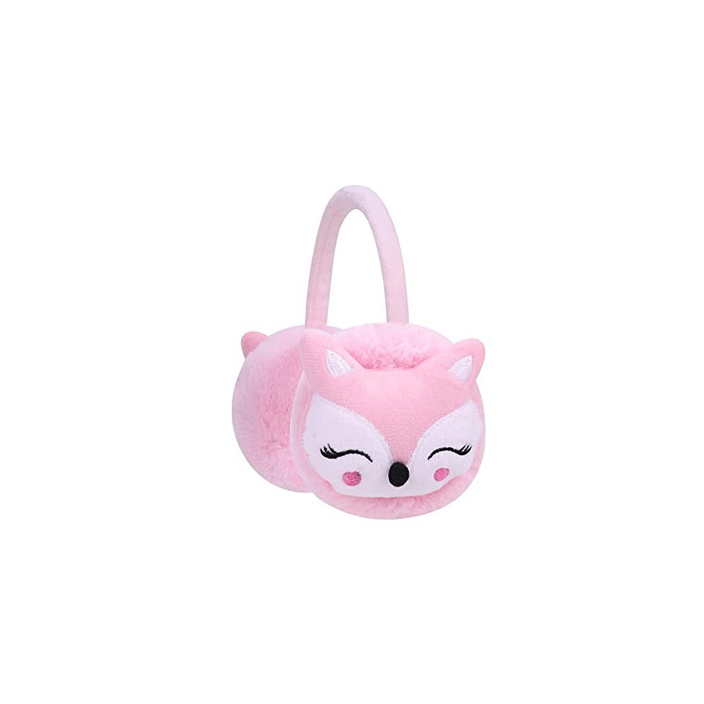 QCHOMEE Kids Cute Fox EarMuffs Boys Girls Cartoon Ear Warmer Plush Furry Ear Hamburg Windproof Headband Fashion Adjustable Christmas Birthday Gifts for Child (Pink)