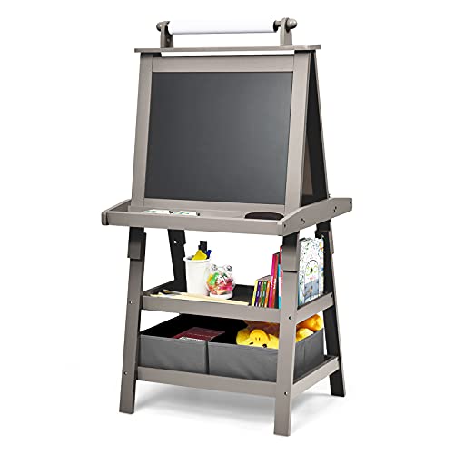 Art Easel for Kids Wooden Kids Easel Double Sided Adjustable Standing Whiteboard and Blackboard with Storage, Painting Art Present for Girls and Boys