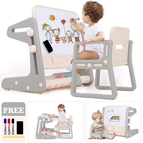 Hadwin Kids Table and Chairs, 3-in-1 Activity & Study Table with Chairs, Convertible Kids Art Easel with Magnetic Whiteboard & Storage Tray for Boys & Girls