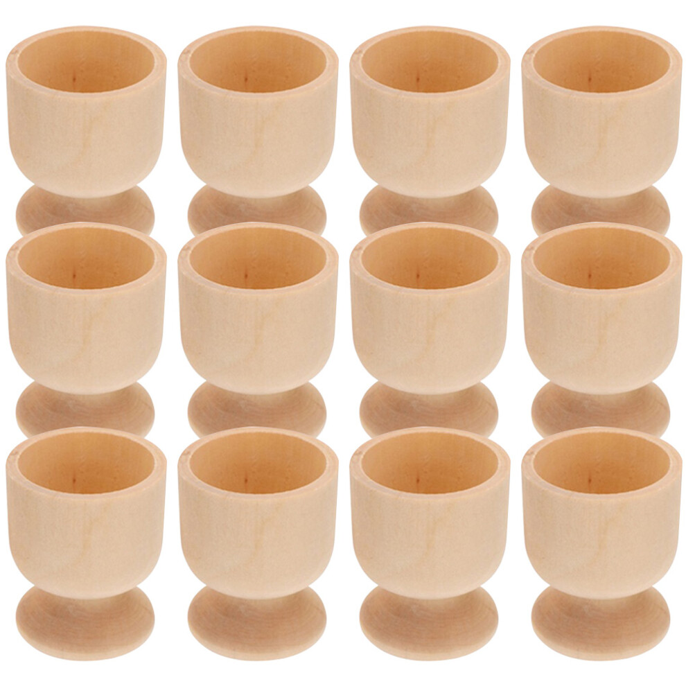 12Pcs Easter Fake Egg Cup Wood Holder Festival Decor Kids Diy Craft