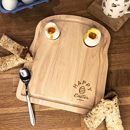 eBuyGB Happy Easter Breakfast Board, Wooden Toast Shaped Serving Board for Egg & Soldiers, Dippy Eggs and Toast, Easter Egg Cup, Easter Gift for Kids, Children,Brown