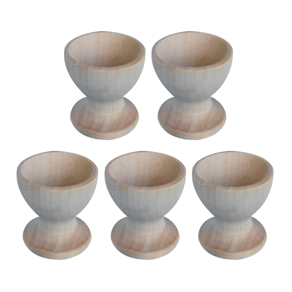 5Pcs Easter Fake Egg Cup Wood Holder Festival Decor Kids Diy Craft