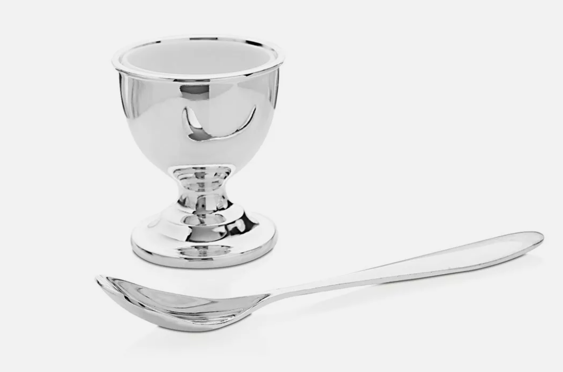 Silver Plated Egg Cup And Spoon Gift Set Christening Present Kids Baby Bambino