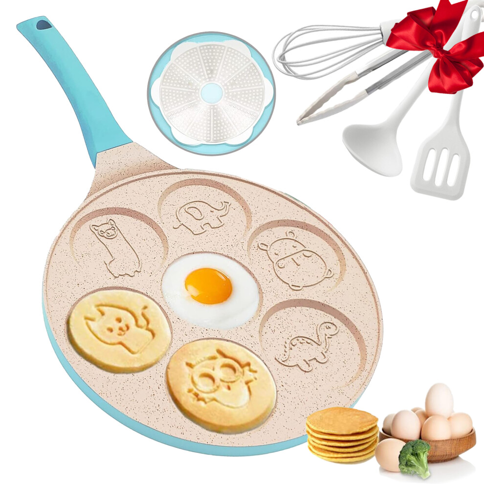 Nonstick Pan for Kids Breakfast, Animal Molds Pancake Maker Pan with 7-Cup Design, Cute Breakfast Griddle Pan Reusable Egg Cooker for Stovetop Cooking