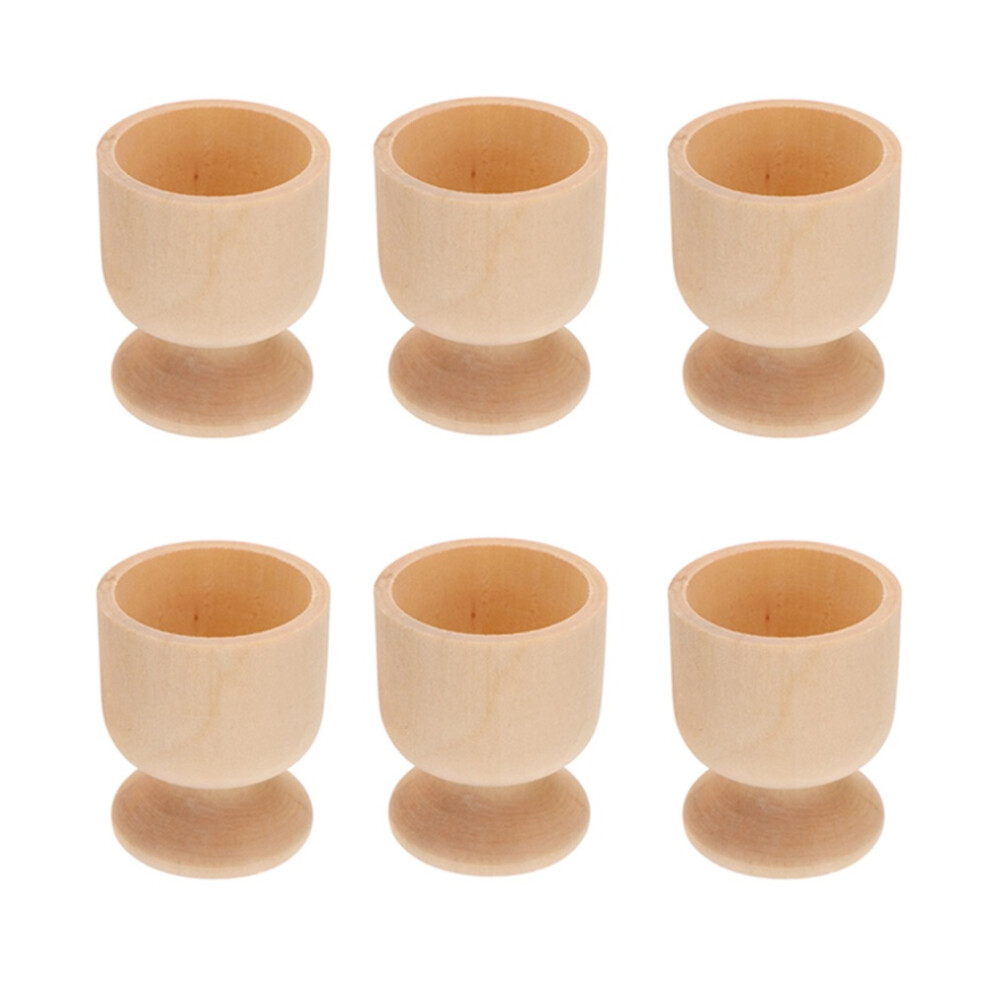 6Pcs DIY Wood Egg Holders Khaki Cup Shaped for Kids Easter Craft