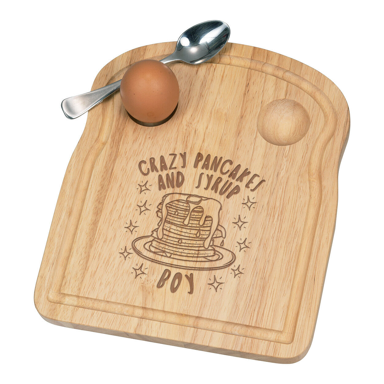 Crazy Pancakes And Syrup Boy Stars Breakfast Dippy Egg Cup Board Kids Best Funny