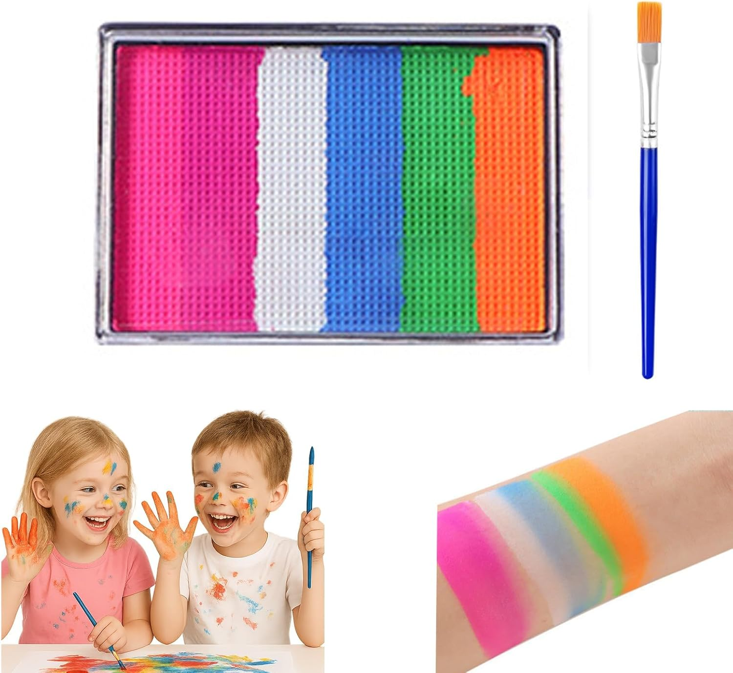 Kids Face Paint Palette with 5 Vibrant Colours & a Fine Brush - Non- Water-Based